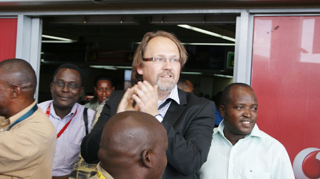 Kocha mpya wa Yanga, Mbelgiji Thom Saintfiet akiwasili katika Uwanja wa Ndege wa Mwalimu Julius Nyerere, Dar es Salaam na kulakiwa na mamia ya wapenzi wa klabu hiyo. wanachama wa timu hiyo wamejitokeza kwa singi katika mapokezi yake tangu anatokea ndani ya Uwanja wa Ndege, hadi akiwa ndani ya gari tayari kwa safari ya Jangwani.